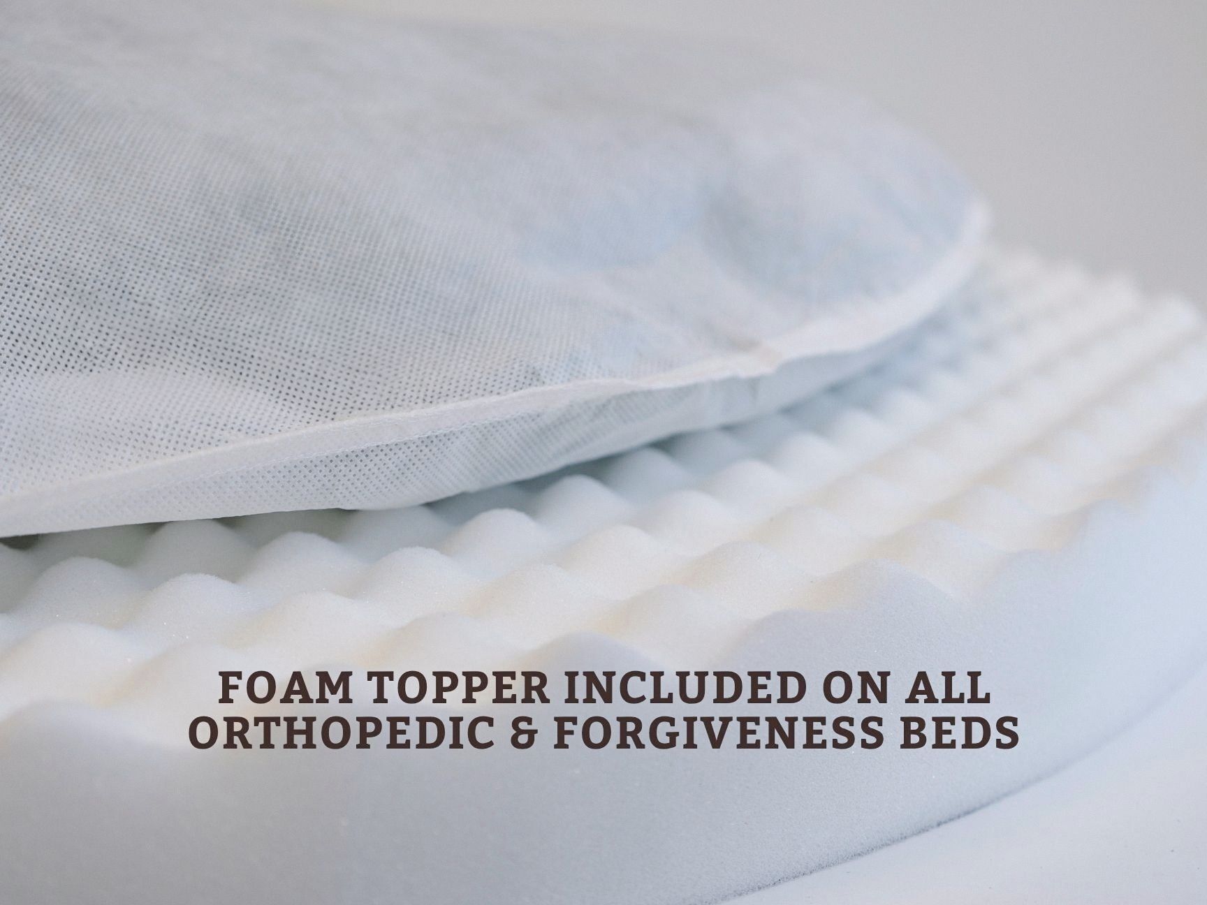 Every Orthopedic or Forgiveness dog bed comes with an added pillow-top layer of recycled poly-cotton fill. This extra layer delivers breathable, cushiony comfort right where it counts — on top.